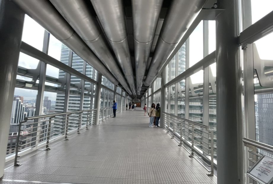 When the doors open on the 86th floor, we are suddenly surrounded by glass on all sides. We are on one of the tallest public viewing levels in the towers, roughly 1,130 feet above the city. From here, 360-degree views allow you to see Kuala Lumpur’s skyline, parks, horizon, and distant ridges through large uninterrupted windows.