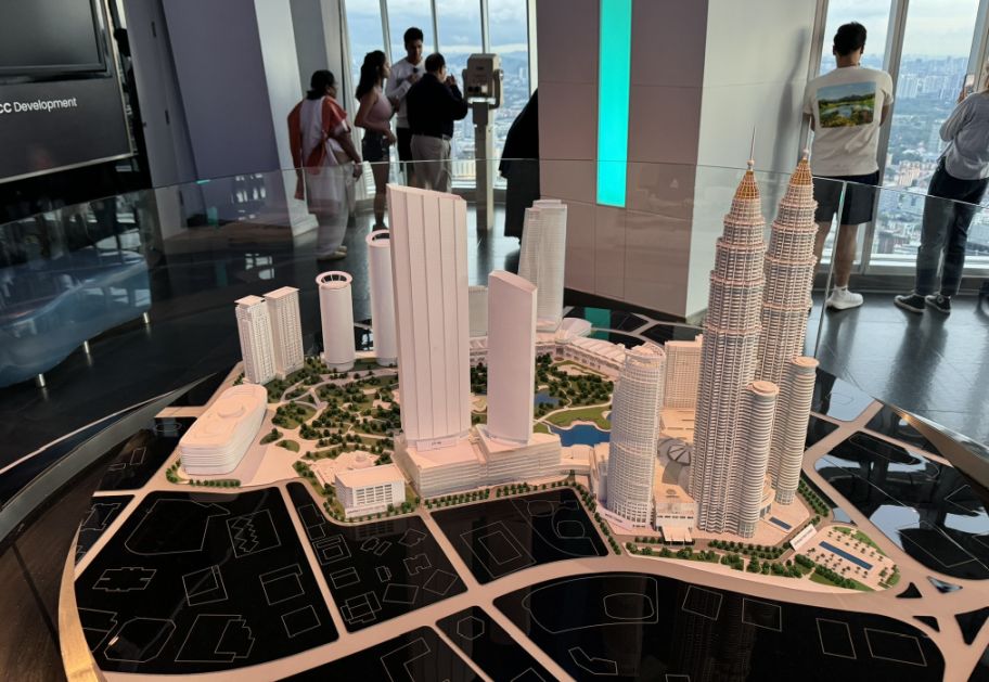 This is the center room in the Observation Deck and in the middle is a display of a scale model of the Petronas Twin Towers and the surrounding Kuala Lumpur City Center (KLCC). The lighting in this room is intentional and futuristic, designed to create a "digital museum" atmosphere