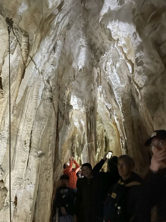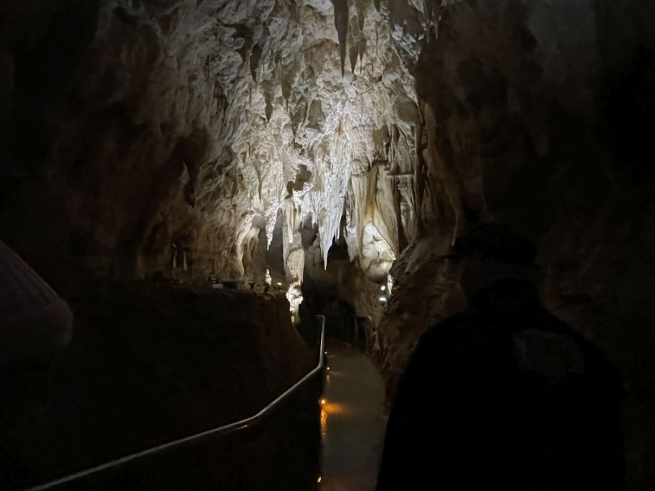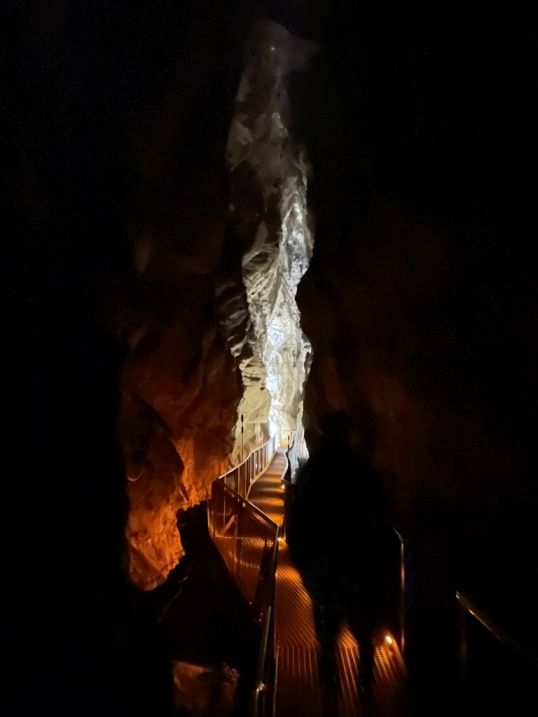 After walking through the beautifully lit limestone passages of the cave, we reached the final chamber: the Glowworm Grotto.
