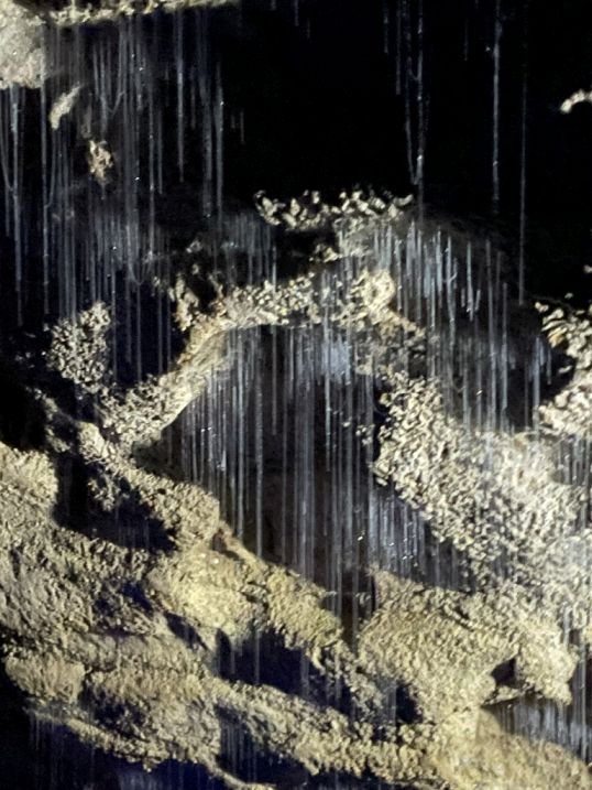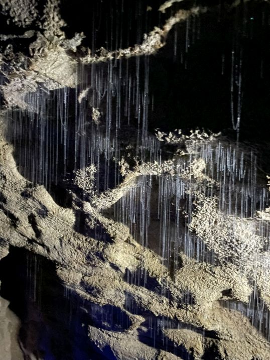 It is so magical to stand in the dark and see the glow of the glowworms in the ceiling.