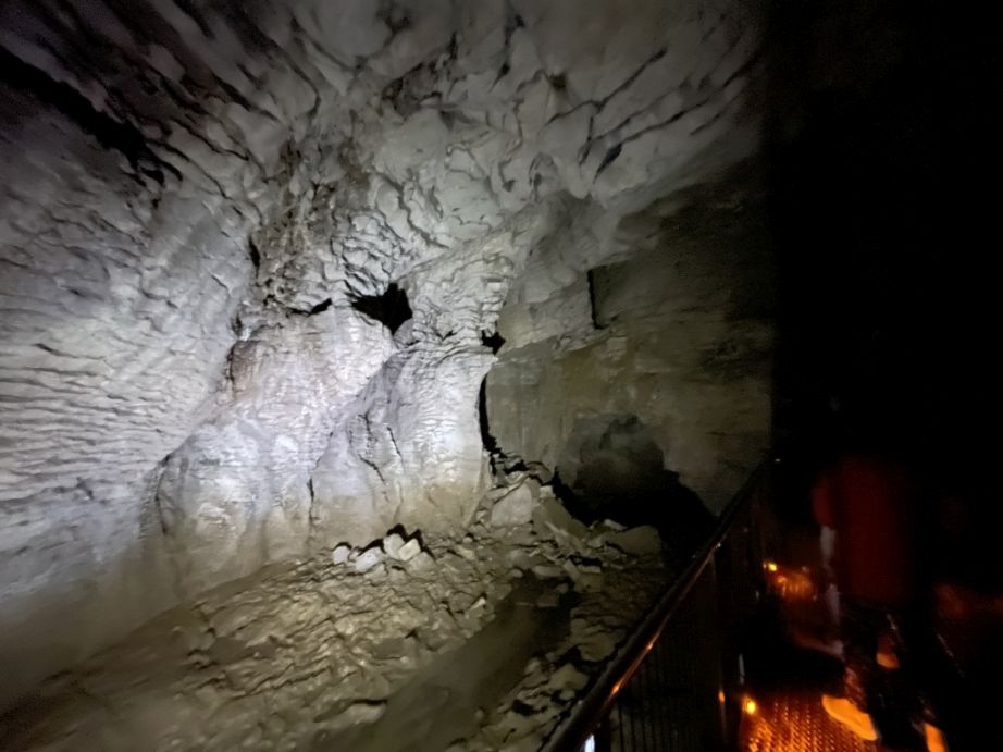 We are now entering the underground and we are surrounded with limestone walls.
