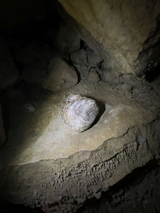 Ruakuri Cave’s limestone was formed over 30 million years ago when the entire region was under a shallow sea. We spotted a few fossilized seashell.