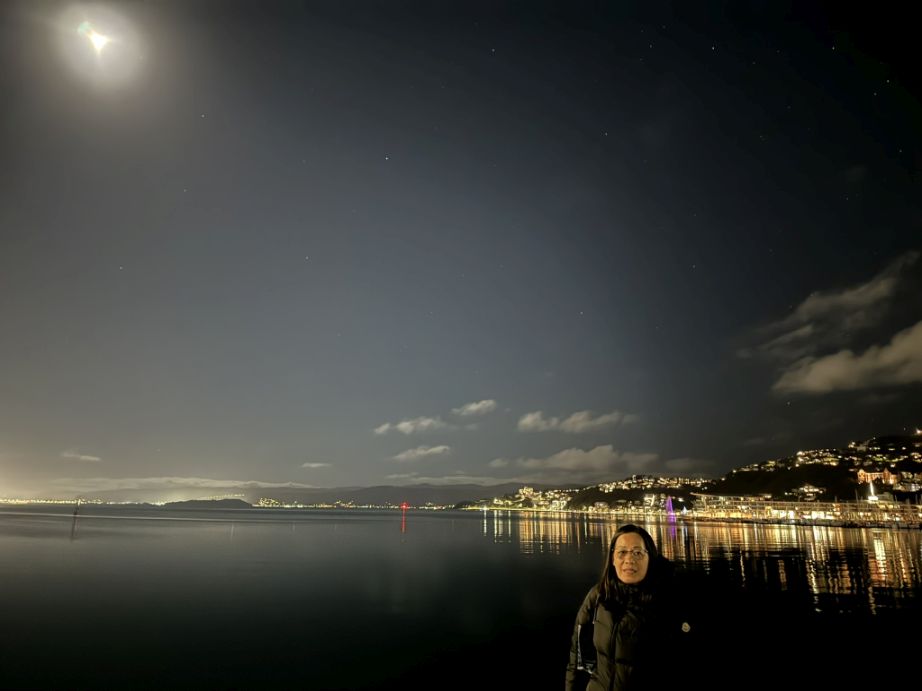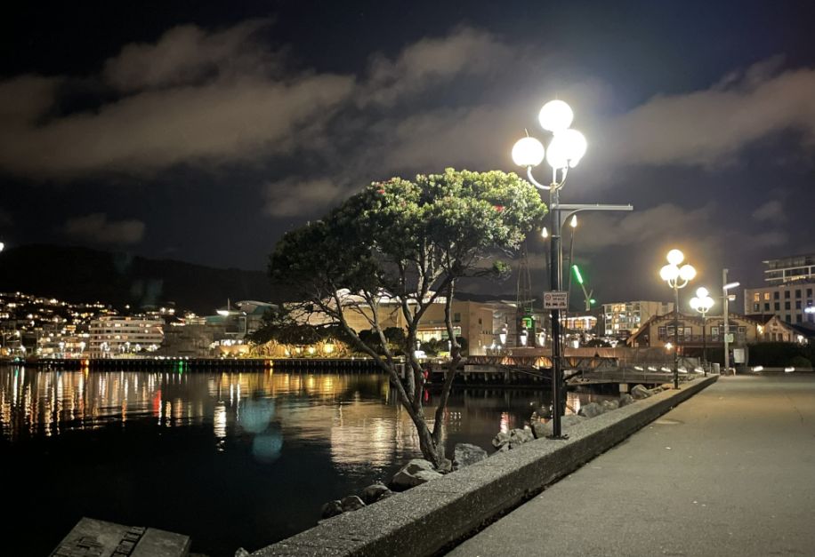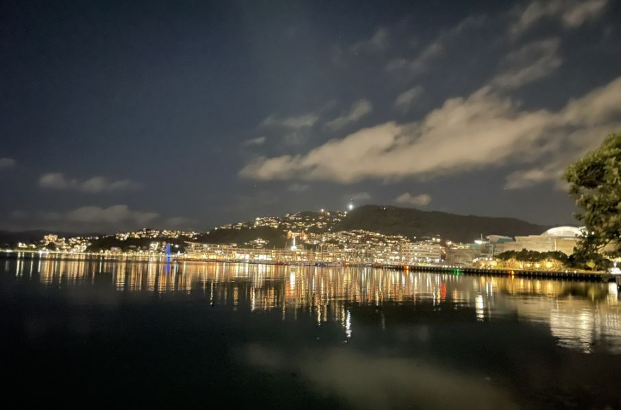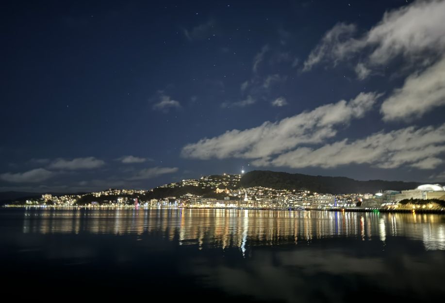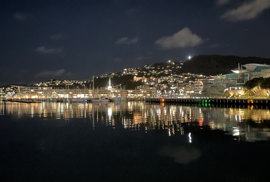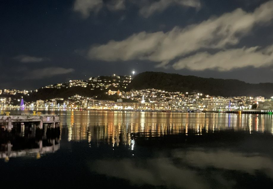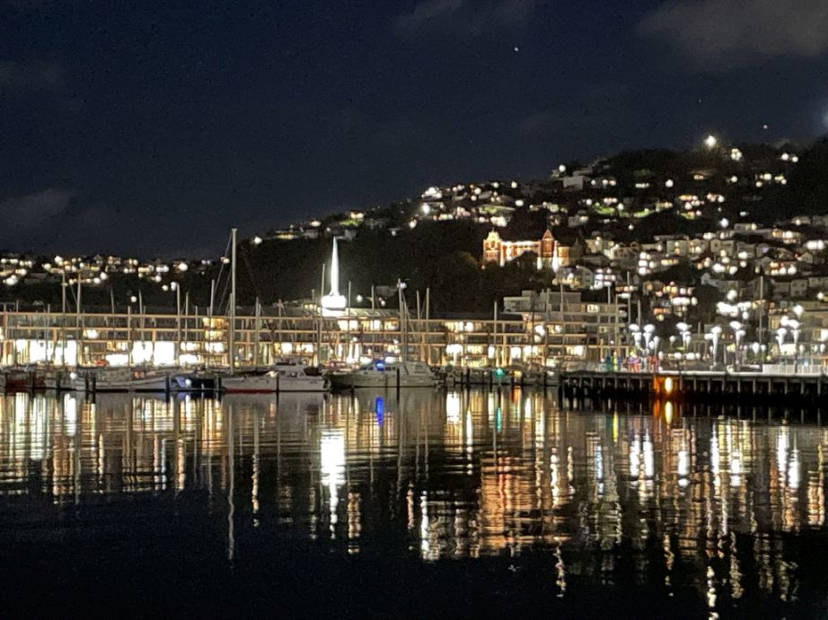 At night you can see the shimmering lights from the Oriental Bay and Mount Victoria.