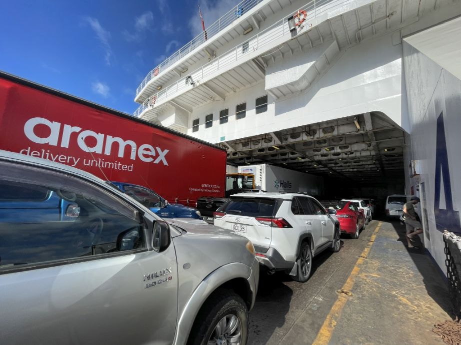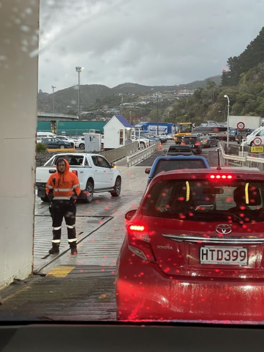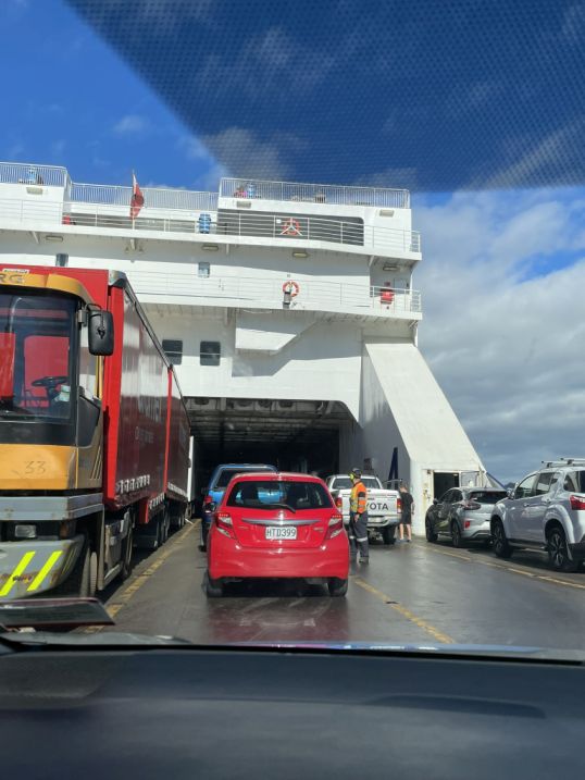 We are now at the inter-island Ferry Terminal from Queen’s Wharf and here we are waiting in line to drive inside the ferry.
