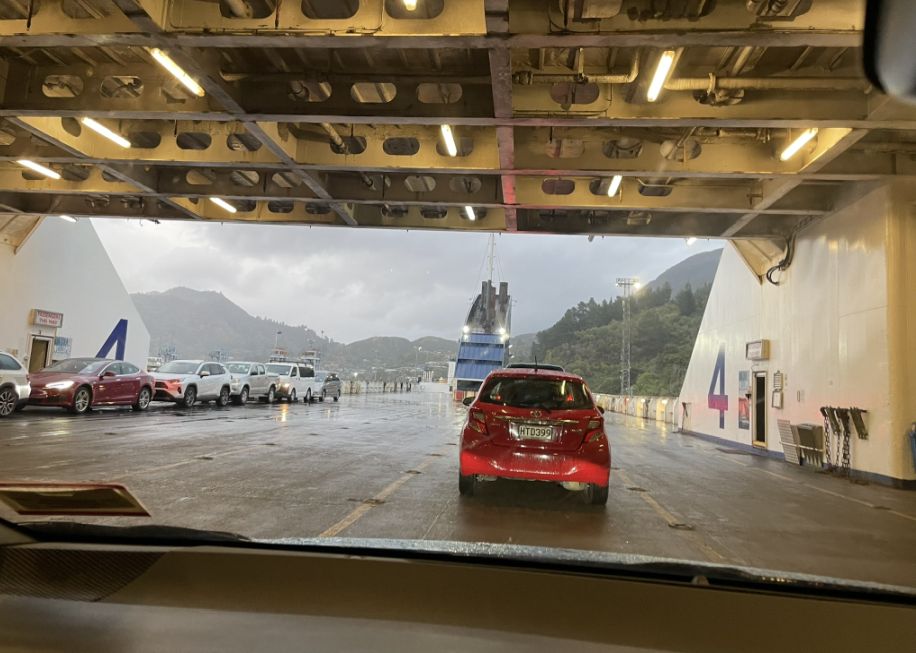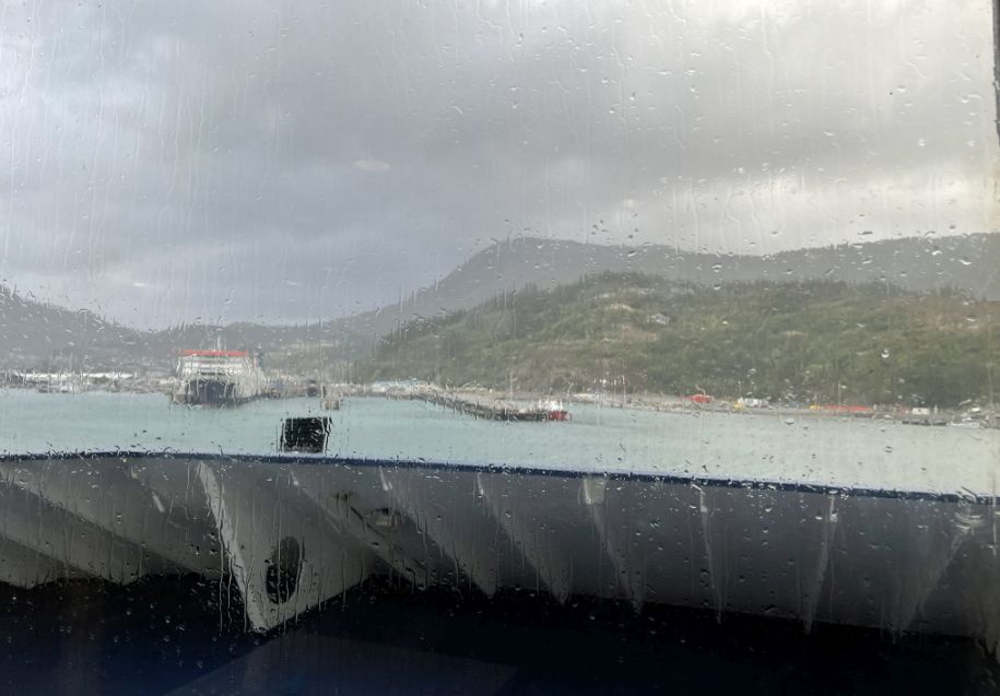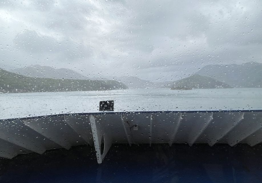 It was raining dogs and cats as we are leaving the ferry.