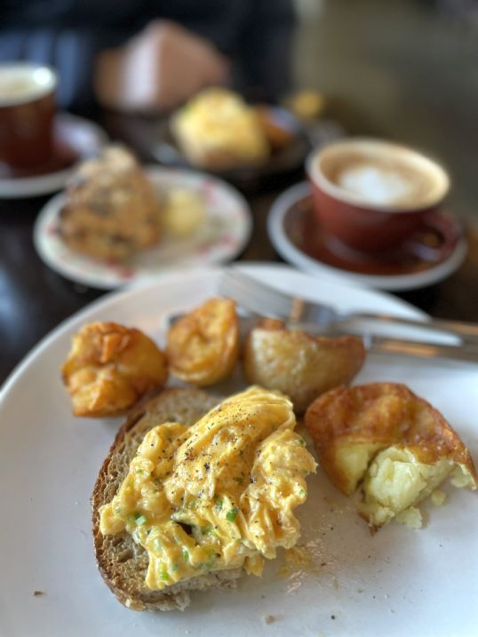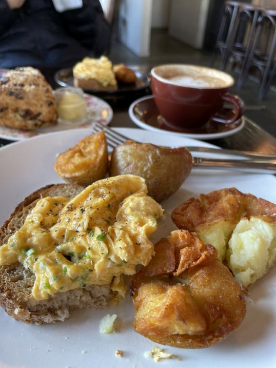 I ordered a toast with scrambled eggs and served with crispy potatoes. Omg, these potatoes are delicious and the toast is also really good.