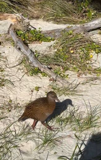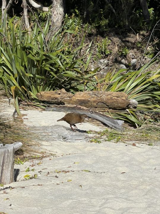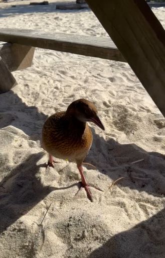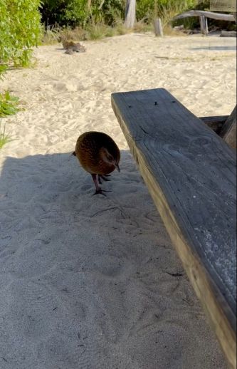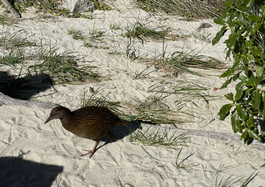 As we sat down to eat, to our surprise a Weka, also known as the Maori hen which is a sturdy brown birds about the size of a chicken, came off the bush and walked over our table.