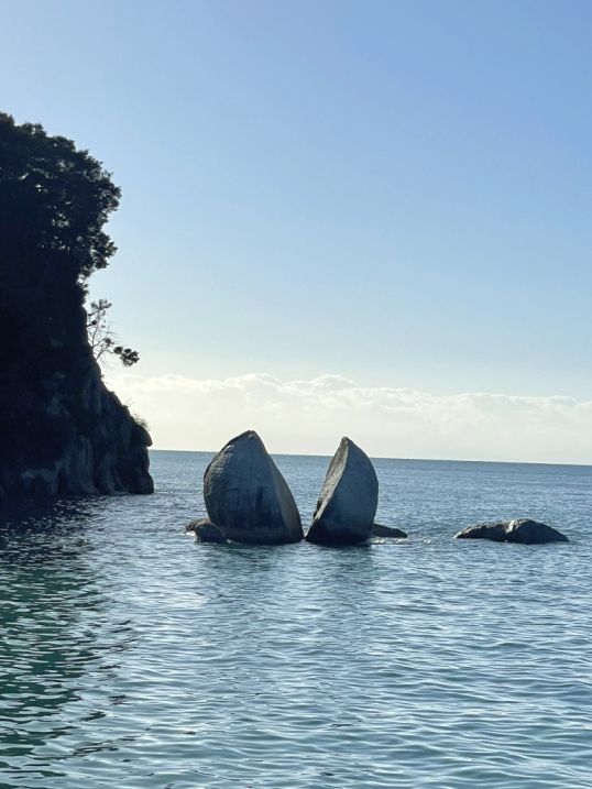 Around 4 miles from Kaiteriteri the boat cruised by the Split Apple Rock, one of the most photographed natural landmarks in the Abel Tasman region!