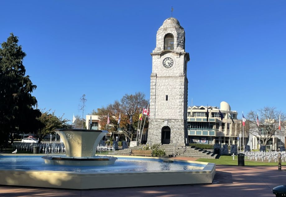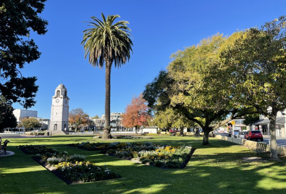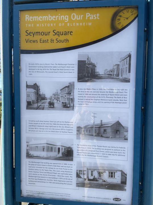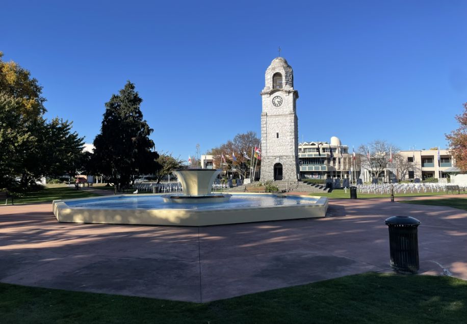 We are now at Seymour Square which is the heart Blenheim's civic and cultural space, and the features some of its most iconic landmarks. The Clock tower stands proudly at one corner of Seymour Square and just in front is the fountain.