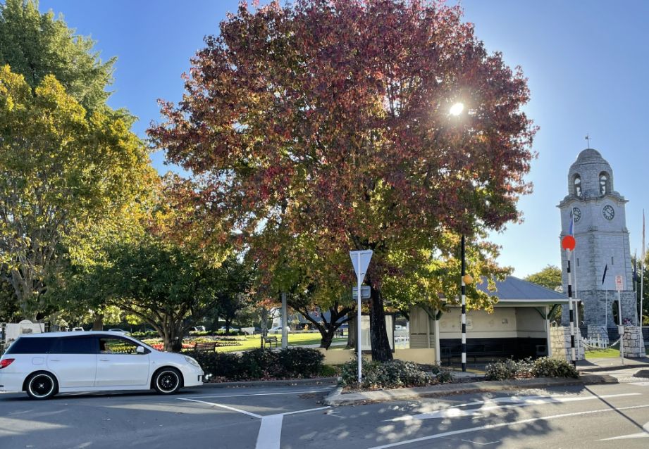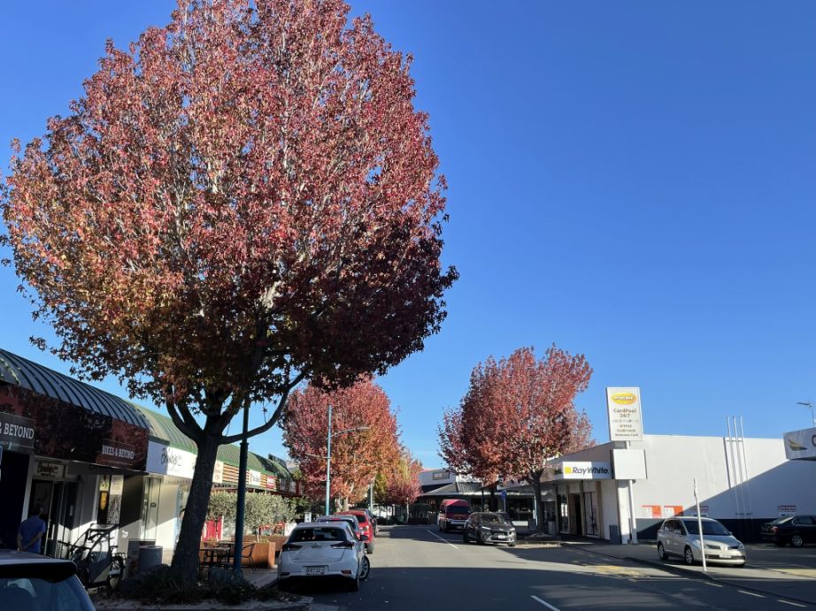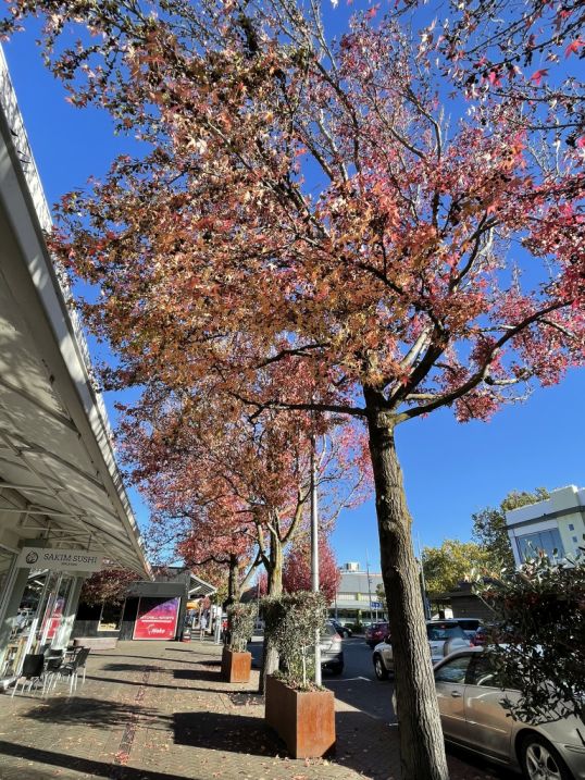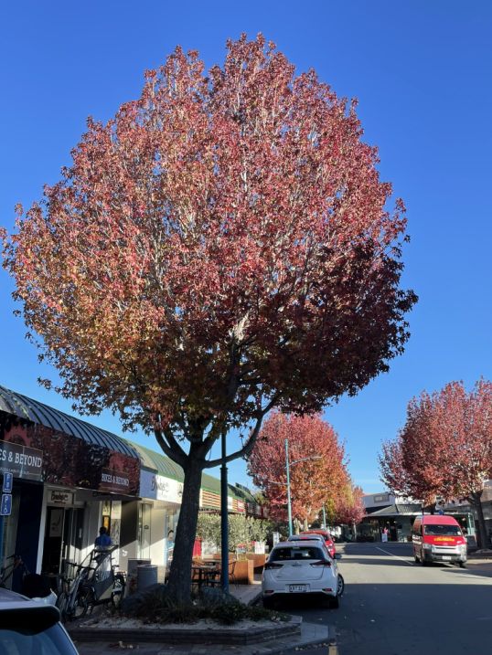 We are catching Blenheim in the fall, and those beautiful red-leaved trees are likely liquidambars or maples, both of which are commonly planted throughout Marlborough for their brilliant autumn colors.