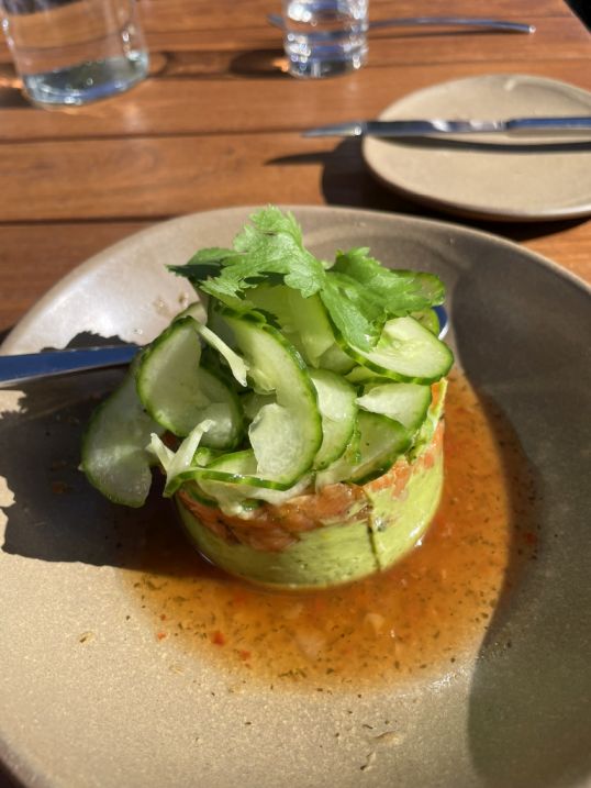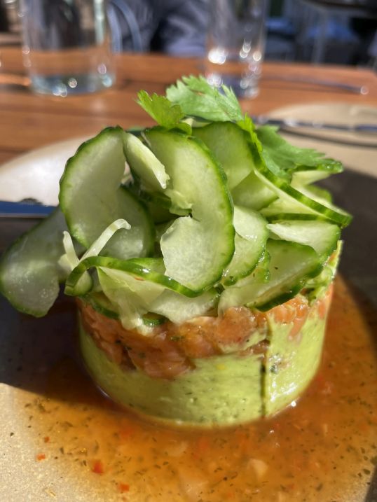 I ordered the Ora King Salmon tartare, Thai chili, Avocado, cucumber & Nam Jim (classic Thai dipping sauce made with fish sauce, lime juice, sugar, chilies', and cilantro).