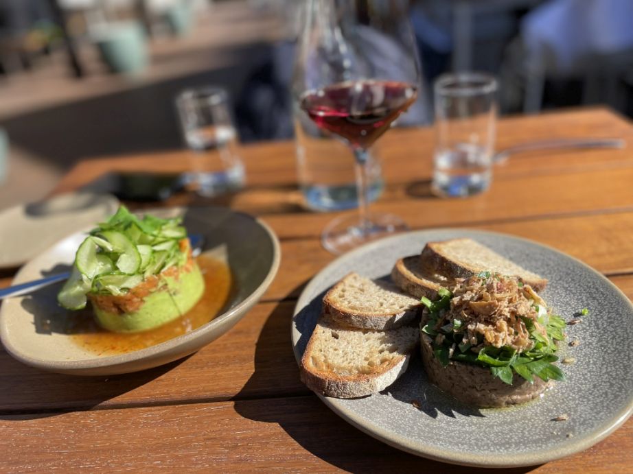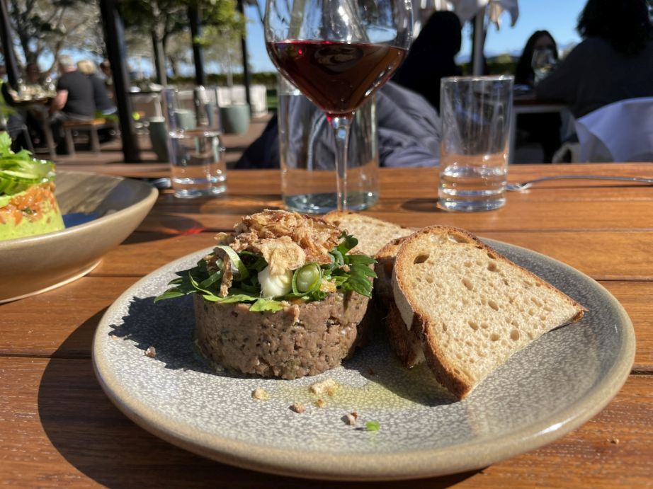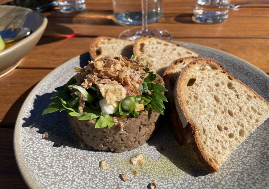 Hoa selected the Beef Tartare, truffle, celery, soy cured egg yolk, & sour dough toast.