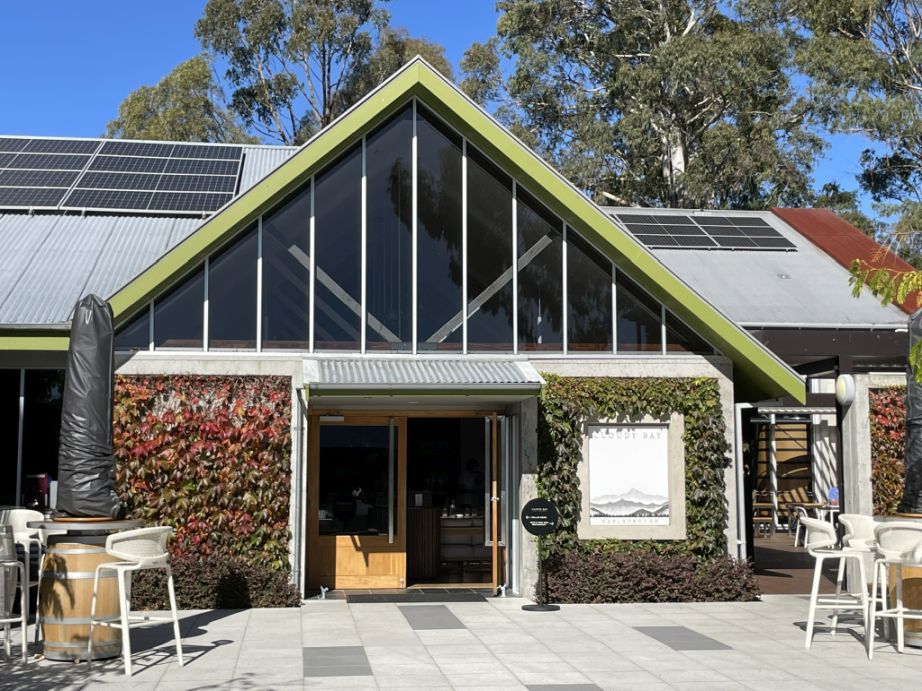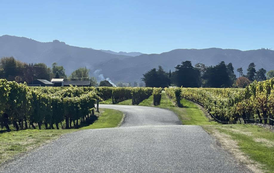 We are now in front of the main entrance with an open view of endless vineyards stretching our across the Wairau Valley.