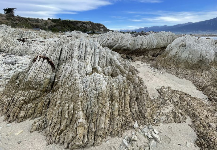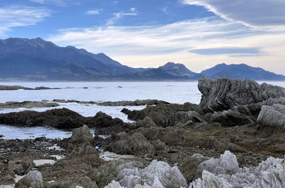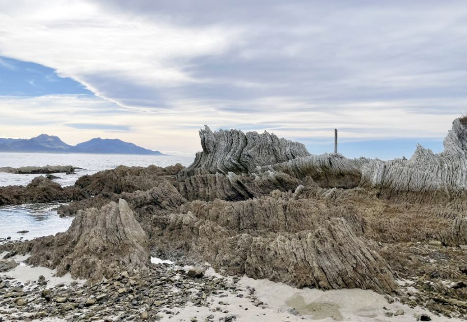 Their shape mirrors the energy of the ocean, as if the land itself is echoing the rhythm of the waves. It’s one of the most distinctive and photogenic features of the Kaikoura coastline, a vivid reminder that this landscape is still being shaped by natural forces.