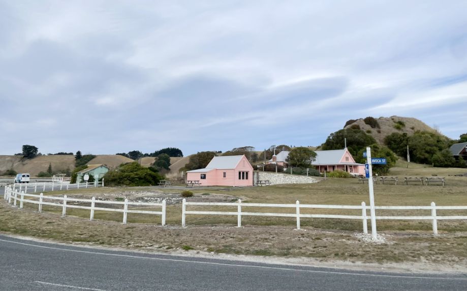 As you continue walking near Avoca Street toward the Kaikoura Peninsula, the atmosphere becomes more local and residential. These houses painted in pink, standing out cheerfully against the more muted tones of the surrounding homes and the natural landscape.