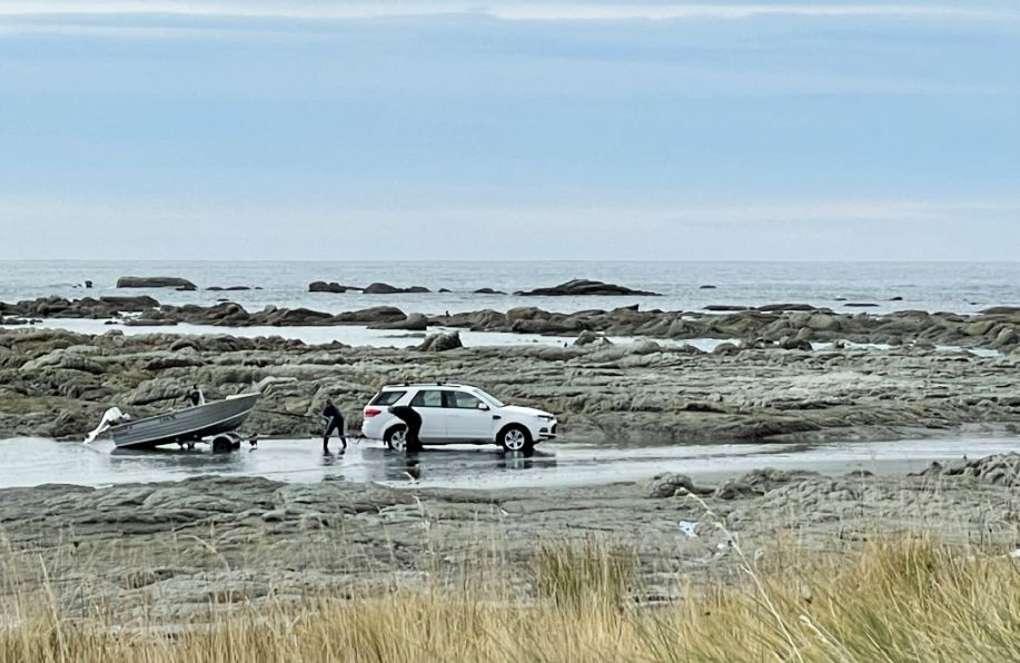Nearby the beach, people parked their cars along the roadside or in small lots, as visitors come to enjoy the beach, explore the Peninsula Walkway, or join local wildlife tours.