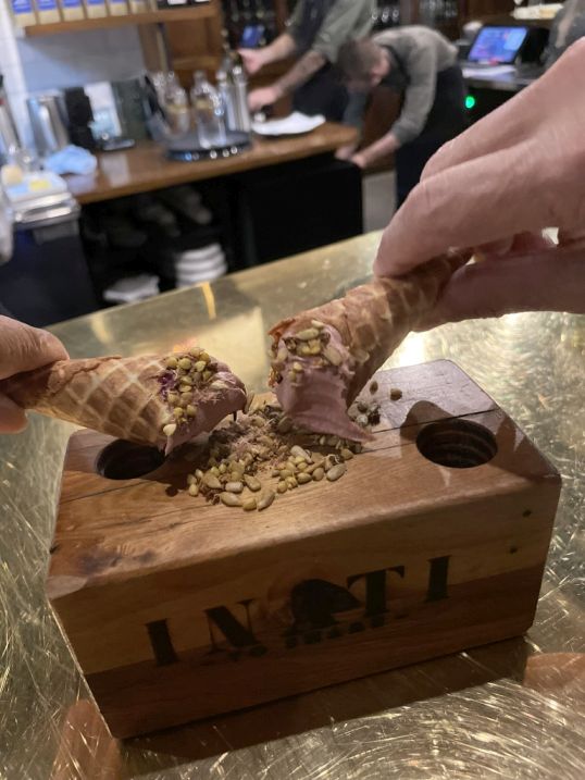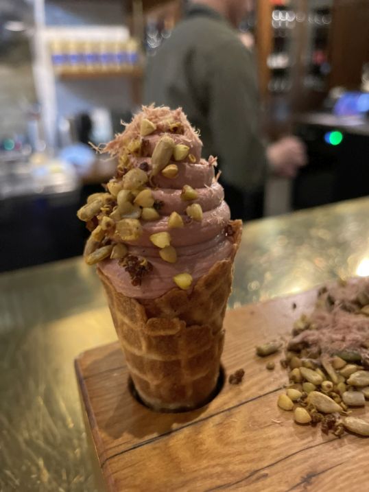We enjoyed dipping the waffle cone in a variety of crunchy nuts and seasoning, I also like the nice contrast of textures.