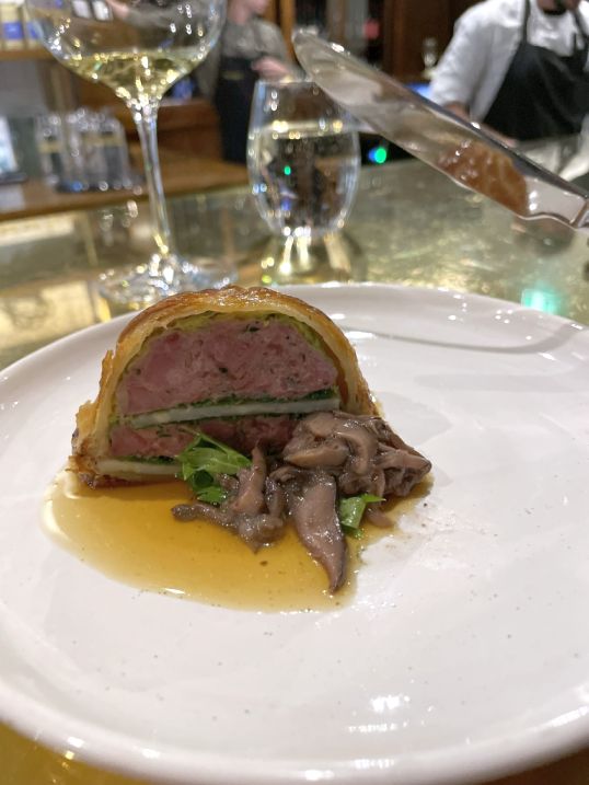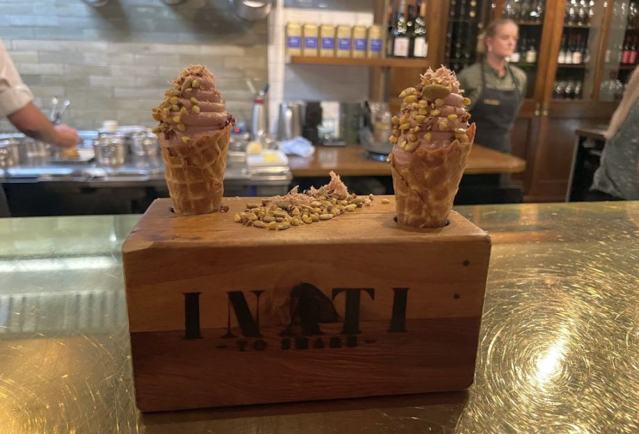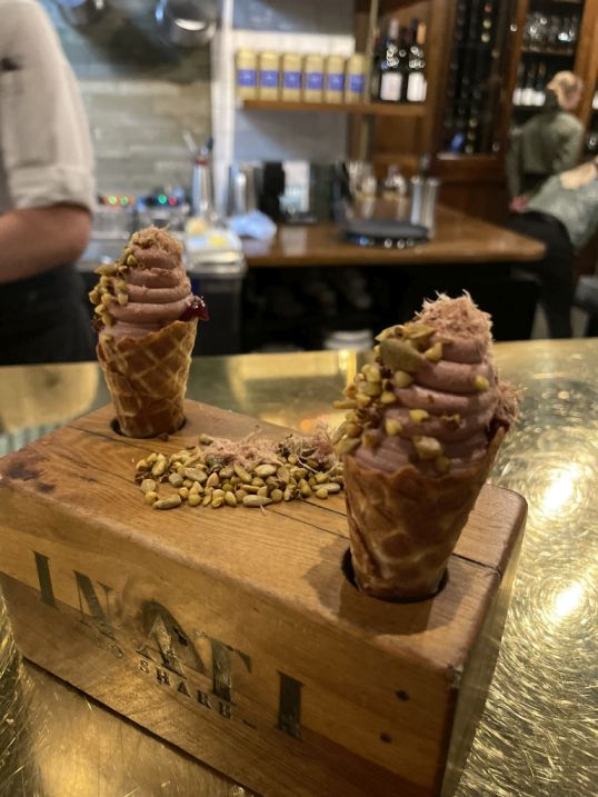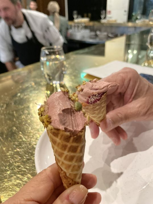 The waffle cones are filled with a rich mousse and it was a fun way to start the meal.