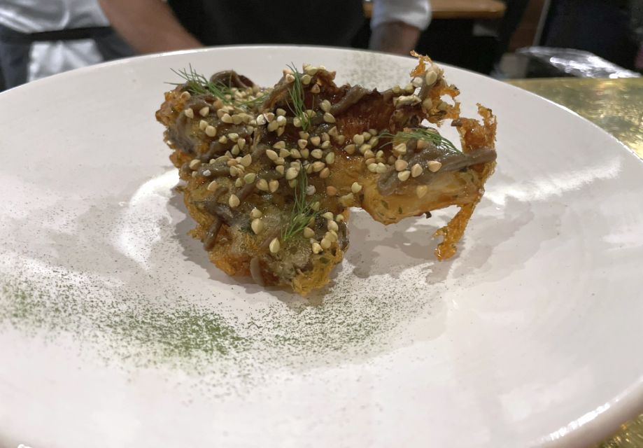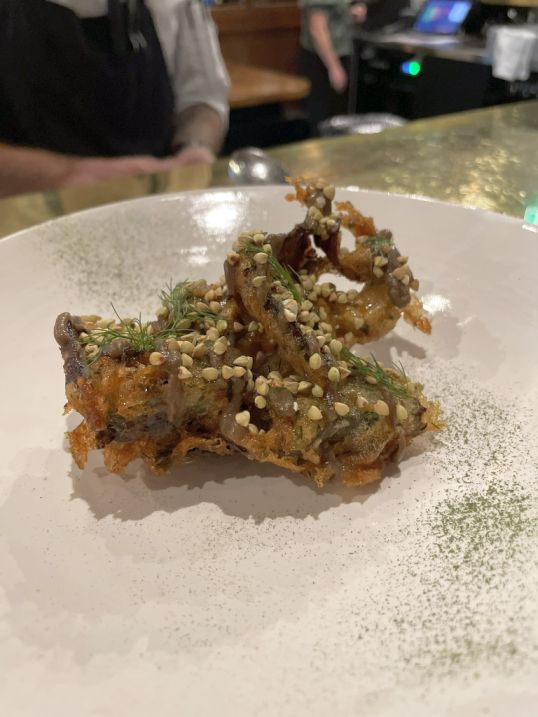 Very interesting bite, the mushrooms are very meaty and were fried tempura style so it was also very crispy and also very tasty.