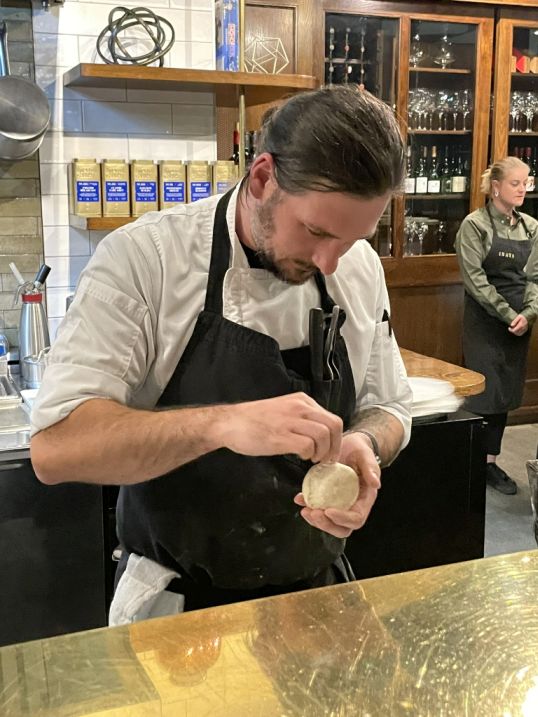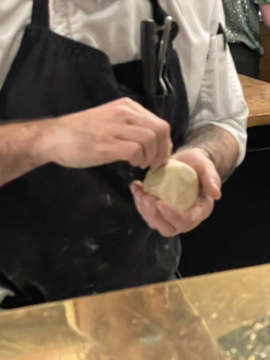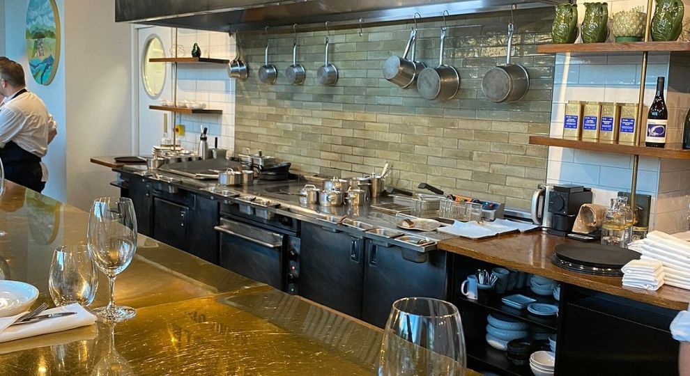 that wraps around the open kitchen so you can watch the team prepare each dish