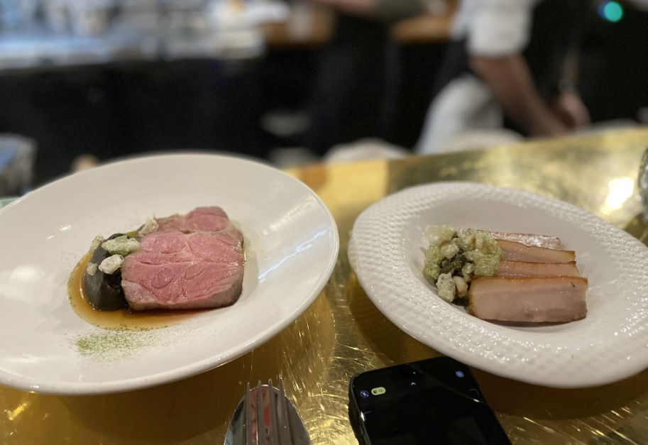 We are done with the first two dishes, and it was a good occasion to talk to the people seating next to us.