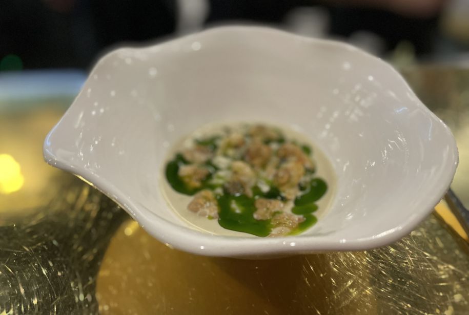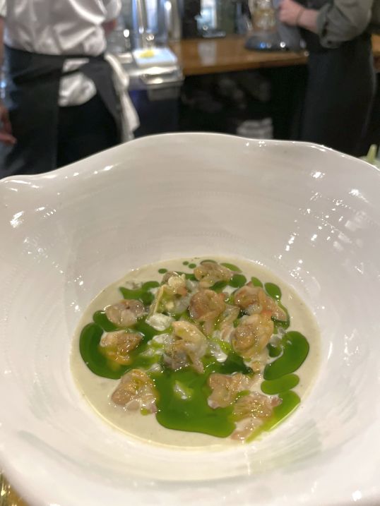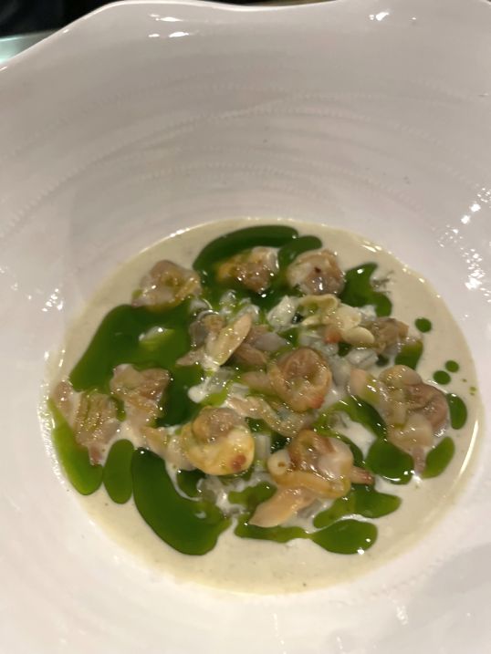 We started the meal with a smoked diamond Clams, celery, lime pickled, and parsley oil,
