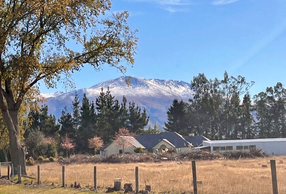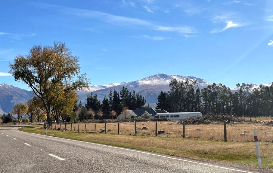 A farm along the way with magnificent view of the Southern Alps in the background.