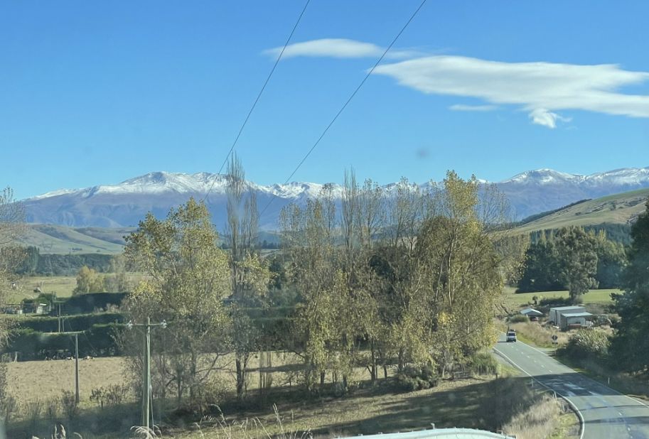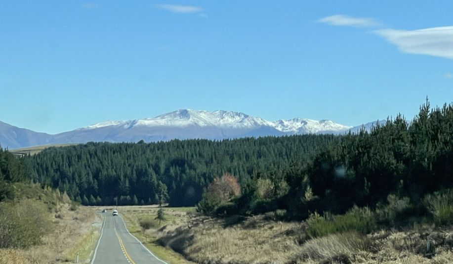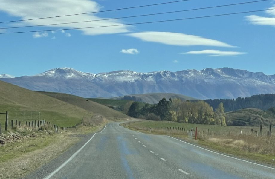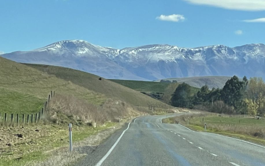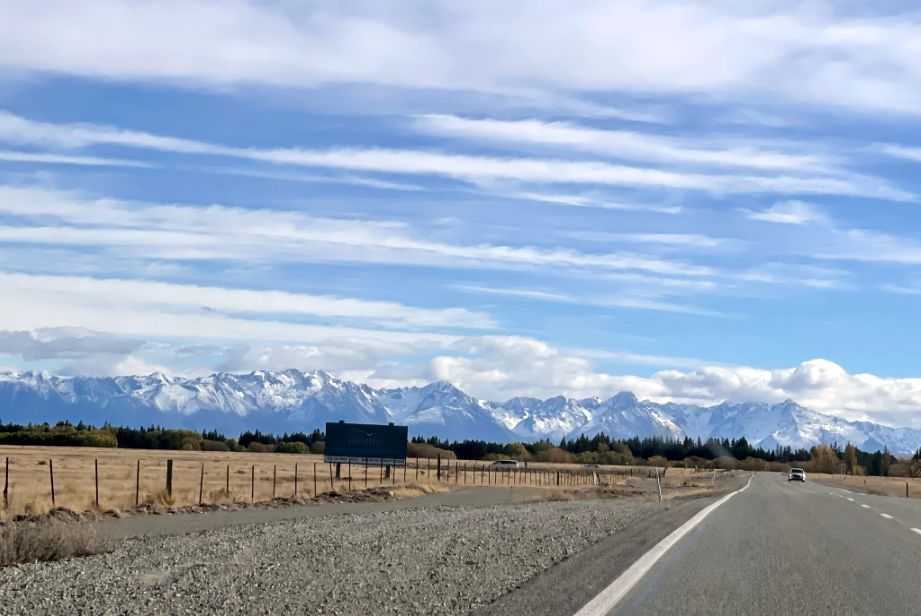 We are in the heart of the Mackenzie Basin, and the views are starting to open toward the Southern Alps. The snow-capped mountains you’re seeing are part of the dramatic ranges that lead all the way to Aoraki/Mount Cook.
