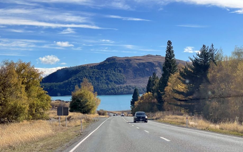 After lunch we left Fairlie and we now on Tekapo Road (State Highway 8), heading into the Mackenzie District, a region known for its wide-open landscapes, dramatic skies, and some of New Zealand’s most iconic scenery.