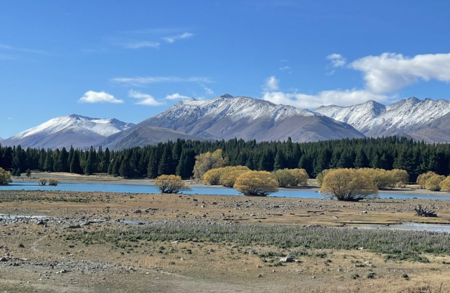 To the northwest and west, the Two Thumb Range and parts of the Ben Ohau Range, both of which rise dramatically from the basin. These mountains are often snow-dusted in autumn (April–May), a hint of winter is approaching