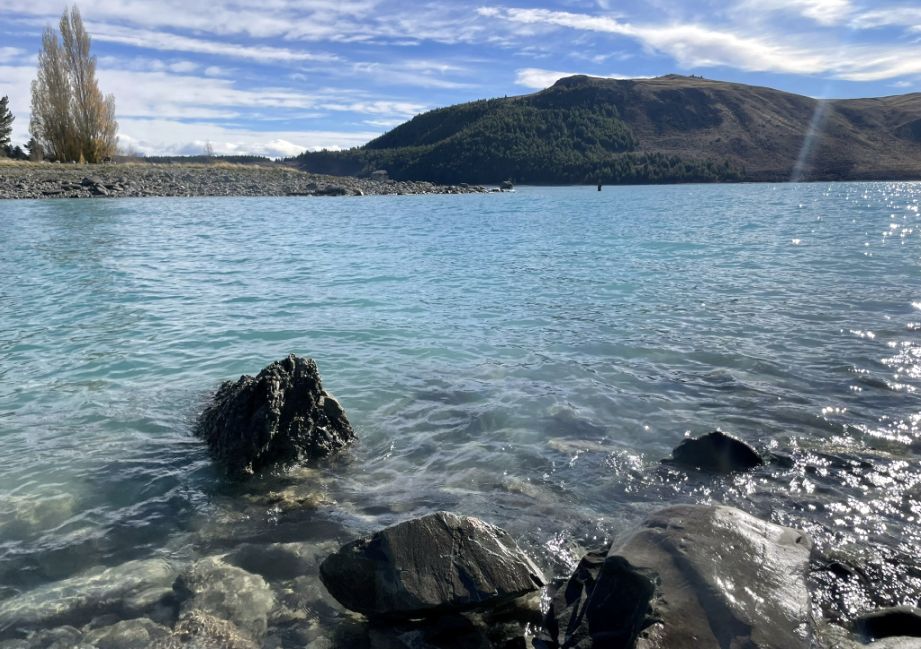 Lake Tekapo is a glacial lake, located high in the inland Mackenzie Basin and far from the ocean so the water is fresh, very cold, and fed by glacial melt from the Southern Alps.