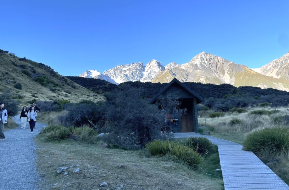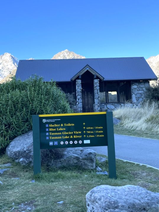 From Mount Cook Lodge in Mt. Cook Village, we drove east along State Highway 80 (Mount Cook Road) for about 5–10 minutes until we reached the Tasman Glacier Car Park. We parked our car in the Tasman Glacier parking and from there it is short walk to the start of the trail
