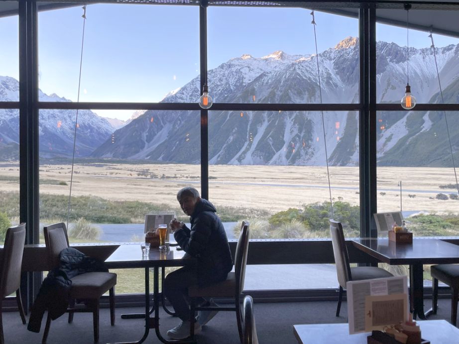 We are now back to Mt. Cook Lodge and the view of Aoraki/Mount Cook is really amazing.