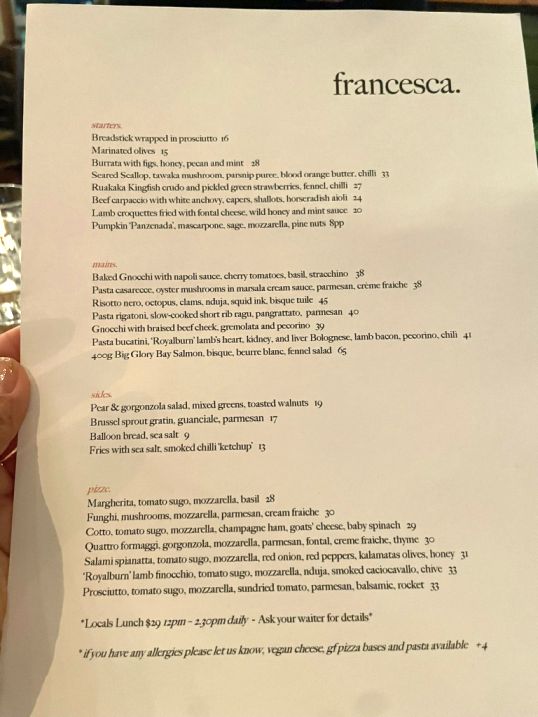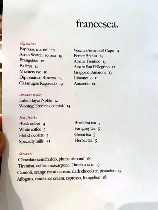 Day 19-Dinner at Francesca, Wanaka-4/29/2024