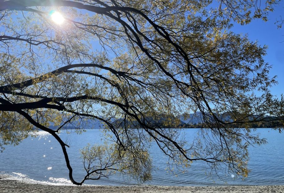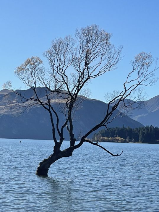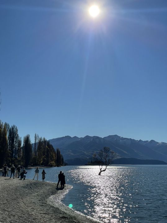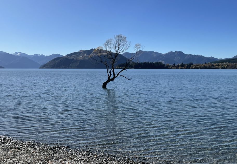 We followed the curve of the lake to get to the famous Wanaka Tree.