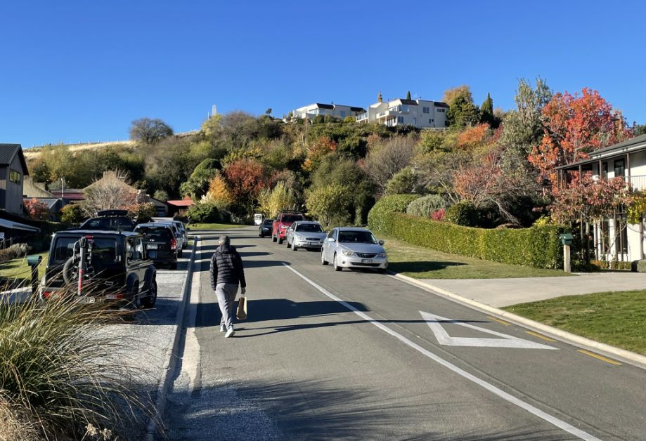 Crossing the street, the view opens up, and right in front of you is the lake, its surface shimmering in the bright fall sunlight. Cars are parked along the shore, adding a touch of everyday life to the scene, but they don’t distract from the natural beauty surrounding them.