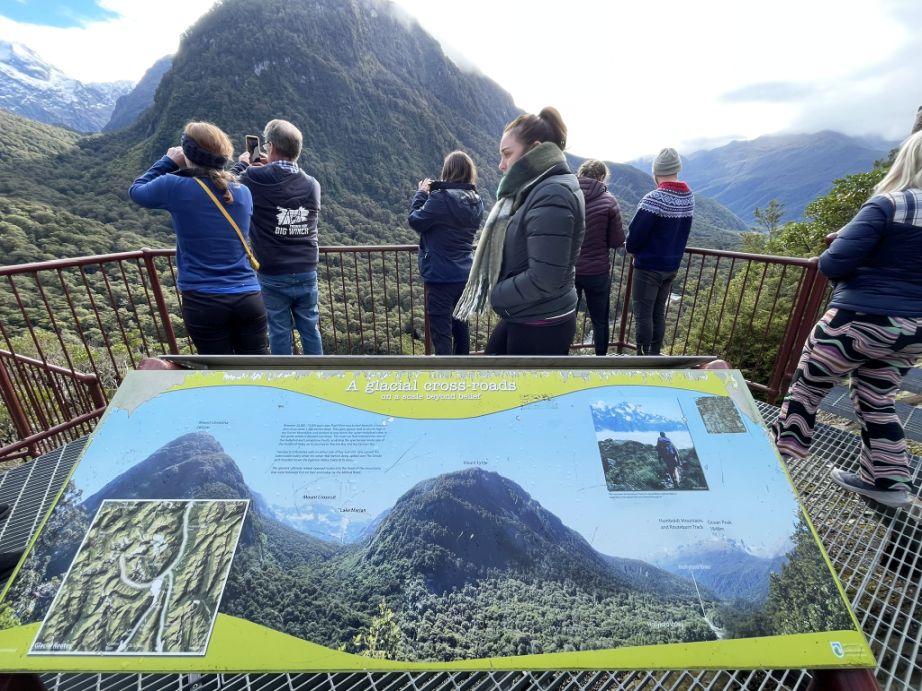 From the look out there is a sweeping view of Mount Christina, Mount Crosscut, and Mount Lyttle.