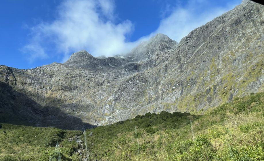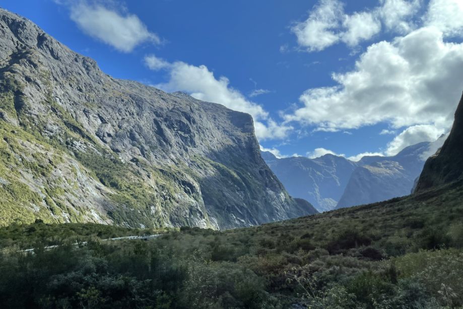 As the bus rolled out onto the Te Anau–Milford Highway, wide stretches of green pasture opened up on either side.