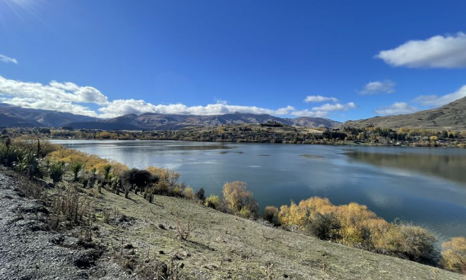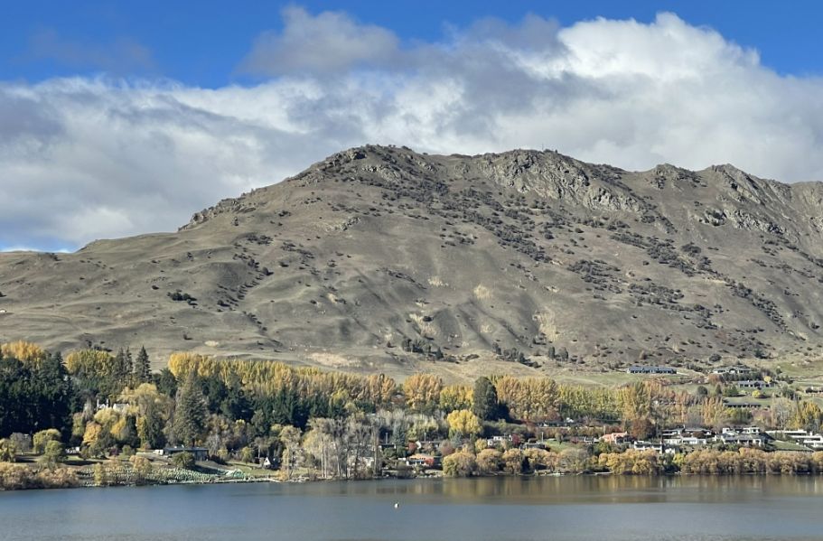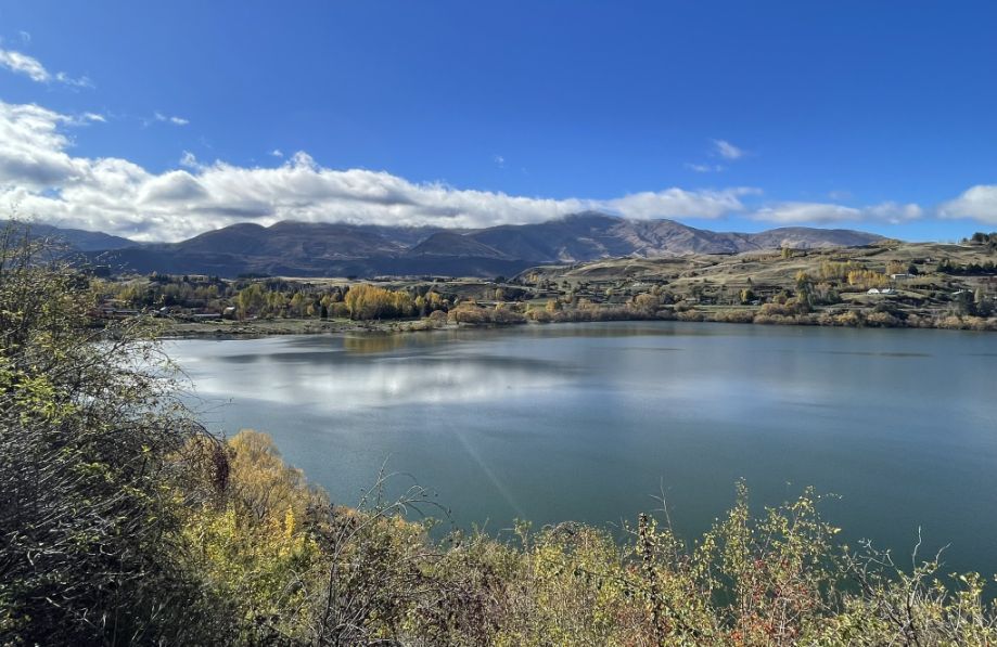 From the hilly path, when you look across to the other side of Lake Hayes, the scene feels completely transformed. Instead of the wild willows and quiet streams, you see a scattering of houses nestled along the shoreline and up the slopes.