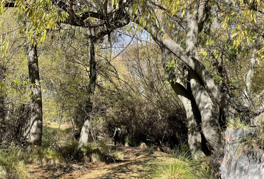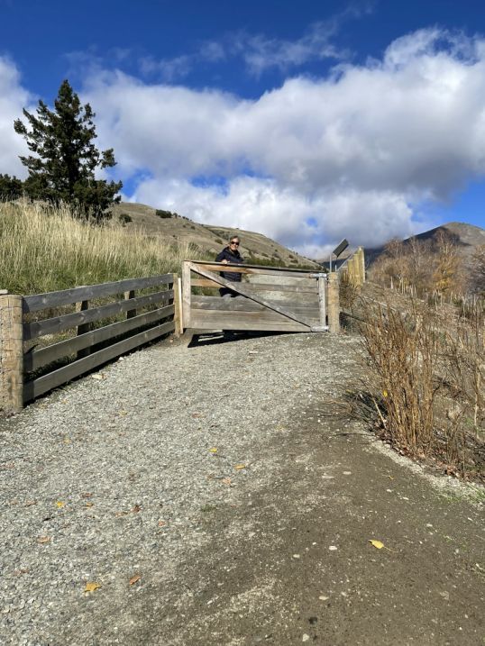 Along the pathway, the trail leads us to a charming wooden bridge spanning a small stream that feeds into Lake Hayes.