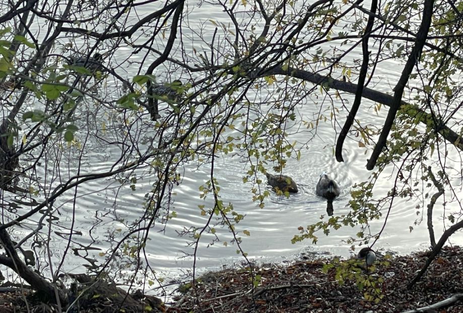 Many of those limbs, stripped of leaves by the season, lean low enough to touch the lake, while others have already fallen, leaving bleached, gnarled branches half-submerged at the shoreline.