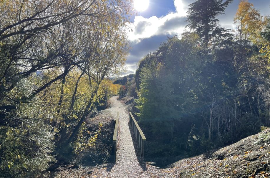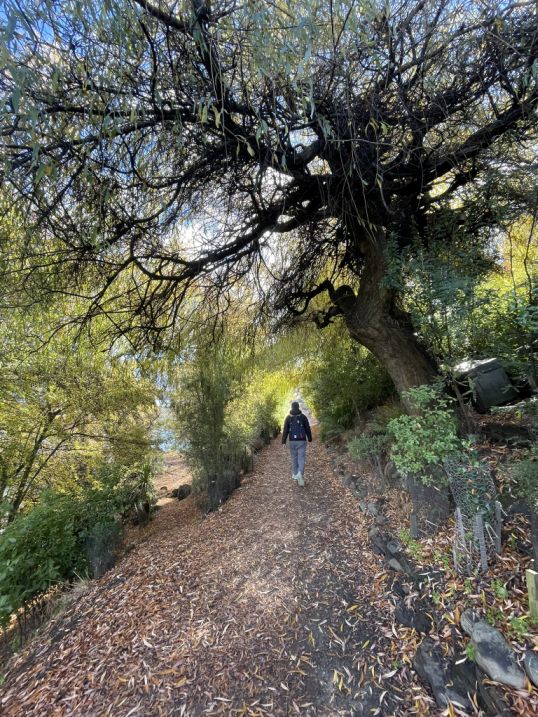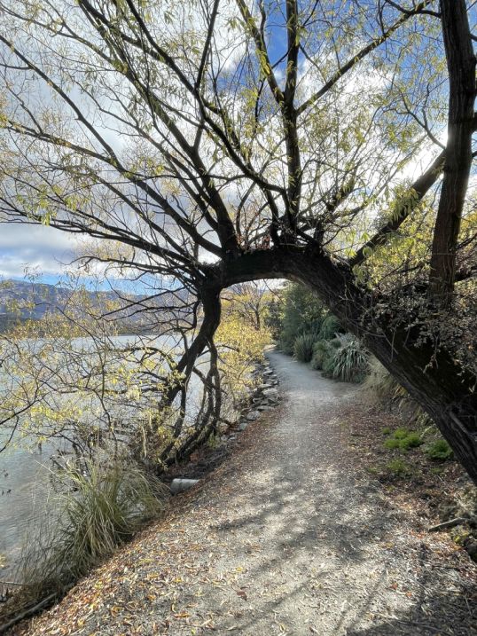 This area is one of the most enchanting sections of the Lake Hayes Walkway. The path feels almost like a tunnel of trees, especially in autumn when the branches arch overhead.
