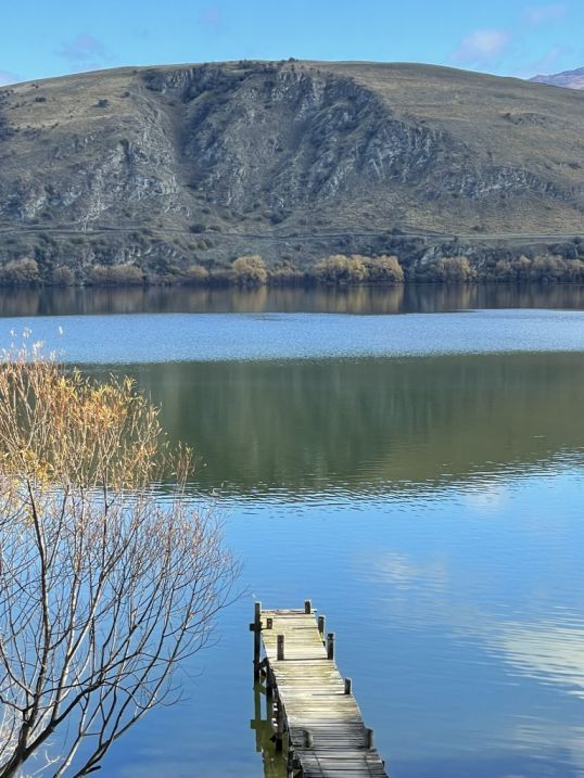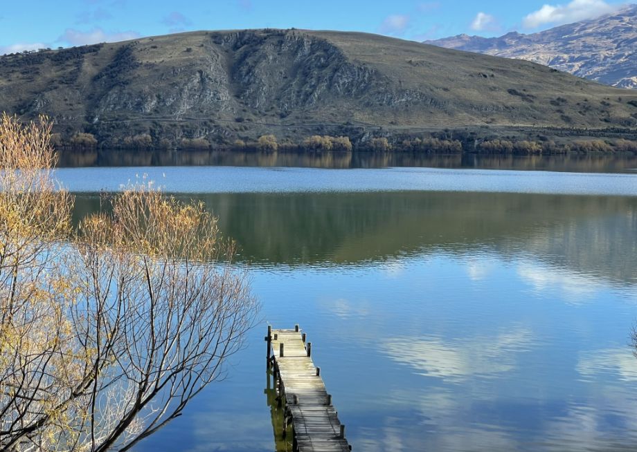 A beautiful small jetty or wooden pier on Lake Hayes.