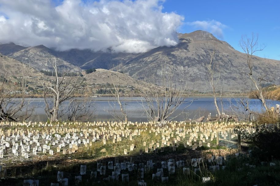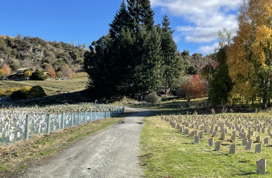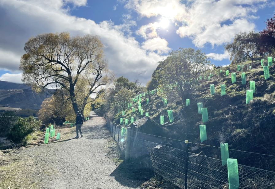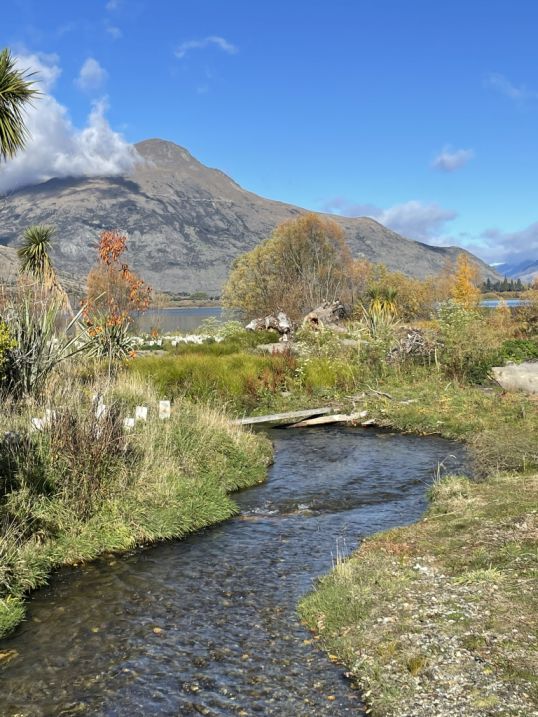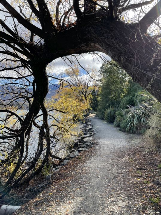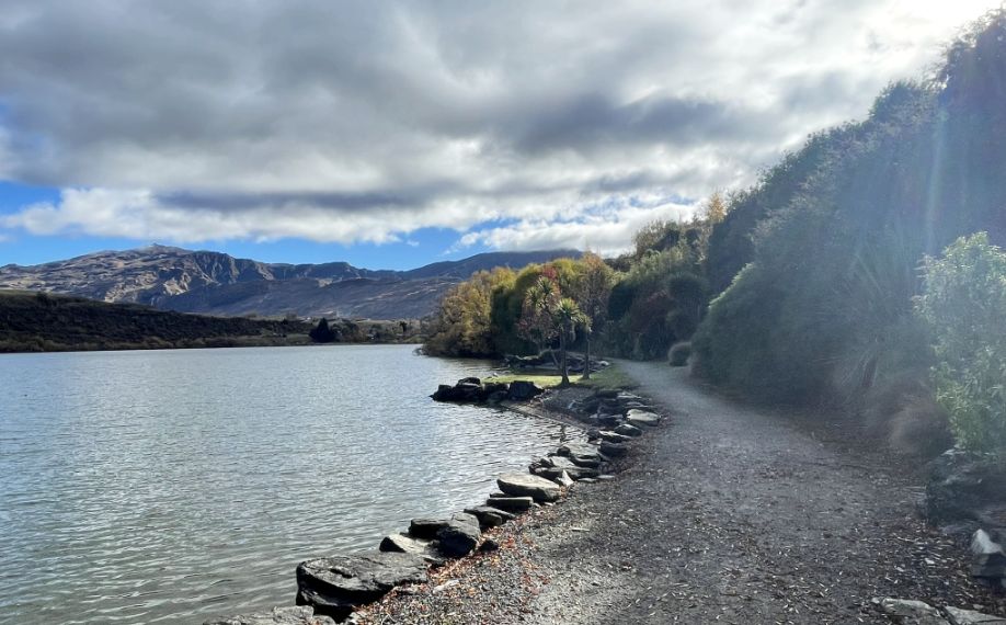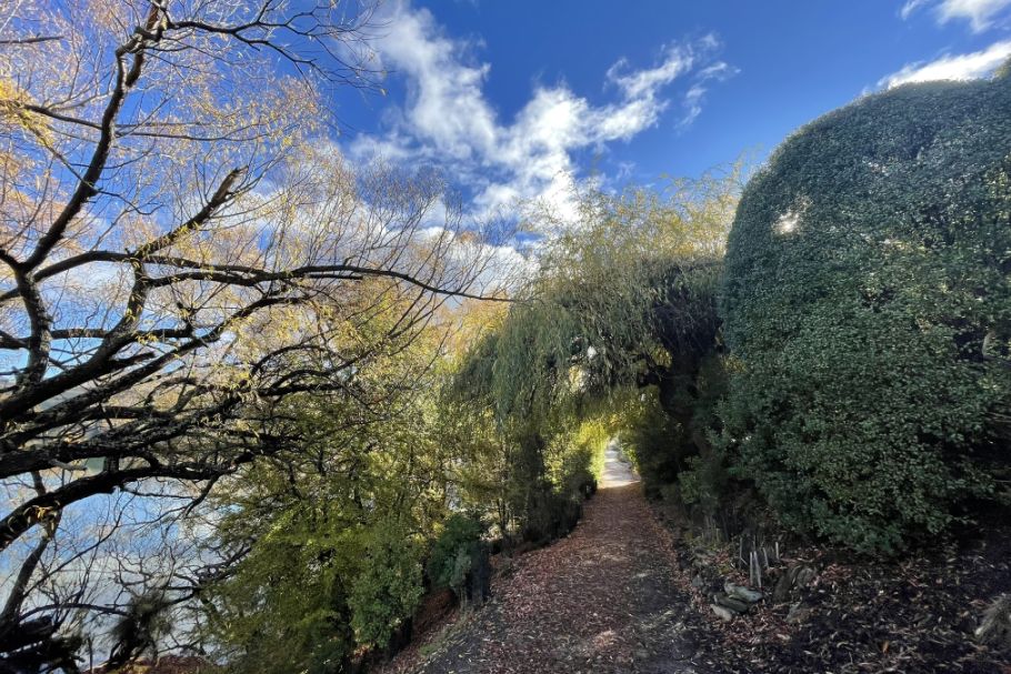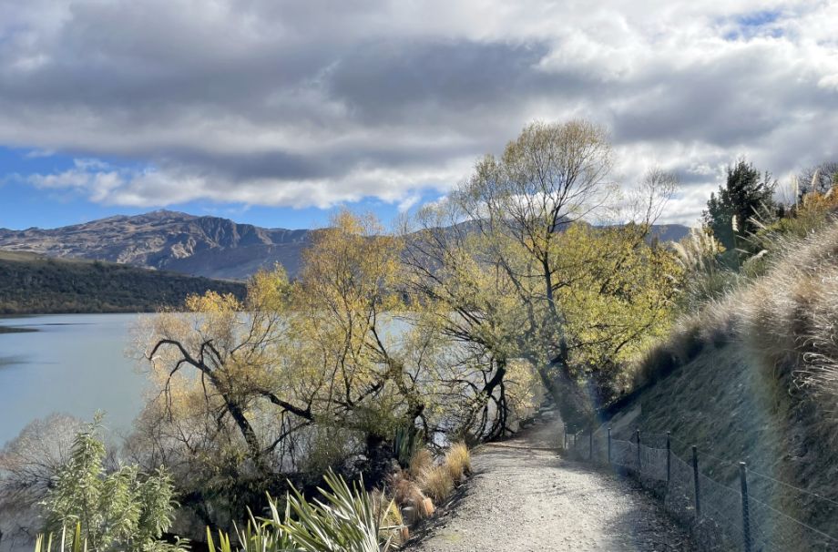 This section shows how Lake Hayes is a blend of European heritage plantings and native New Zealand vegetation, creating a walkway that feels both cultivated and wild.