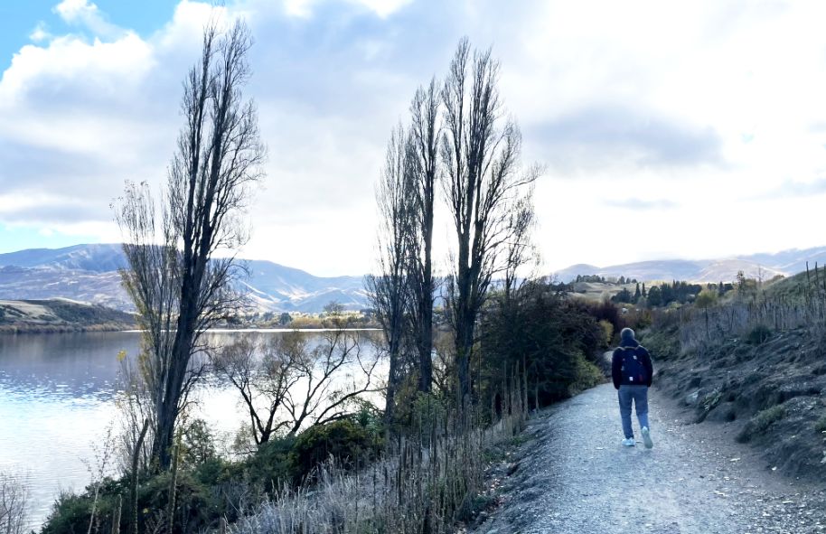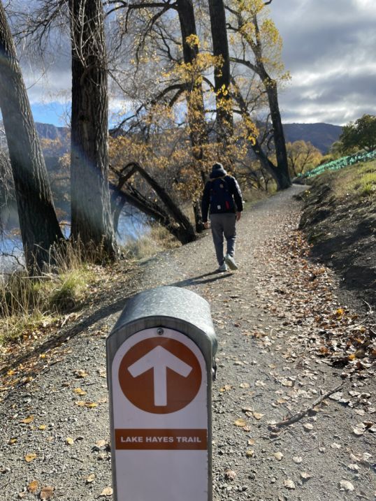 We parked our car on the Lake Hayes Pavilion which is a popular entry for the Lake Hayes Walkway, a loop track of about 5 miles circling the lake.