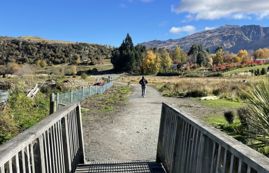 The wooden bridge along the Lake Hayes Walkway adds a lovely touch of charm to the hike. It spans over a small stream that feeds into the lake, allowing water and wildlife to flow freely beneath while keeping the trail dry and easy to follow.