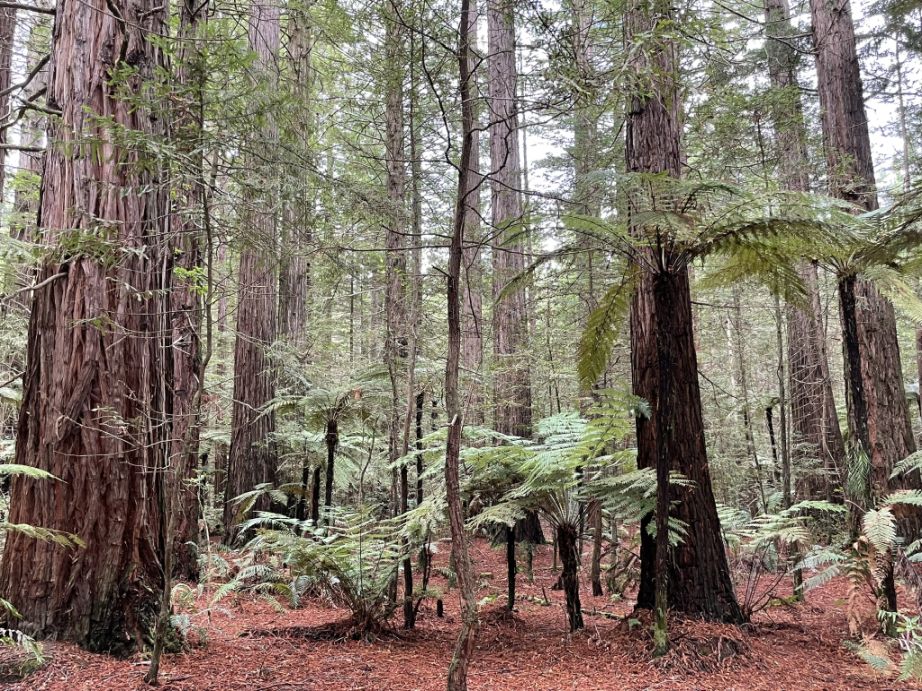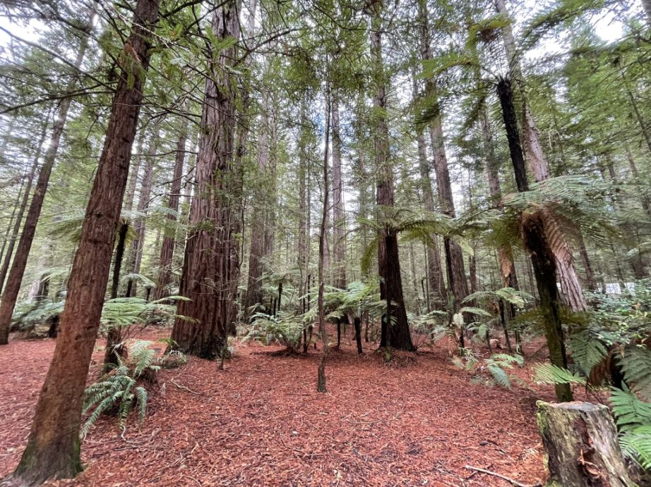 Beside the redwood trees, the forest contains a number of other exotic species introduced during the original forestry experiments. The most successful of these is radiata pine, which makes up the majority of the greater Whakarewarewa State Forest.