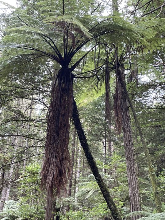 The black tree fern, which grows to be the largest local arboreal fern at a maximum of 66 ft. in height
