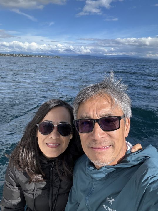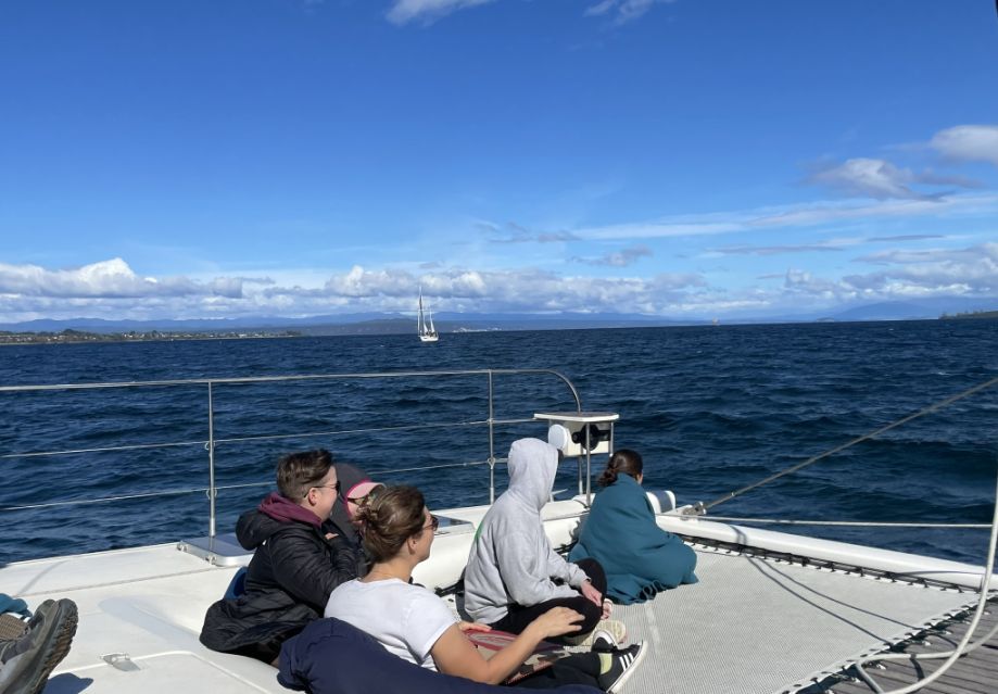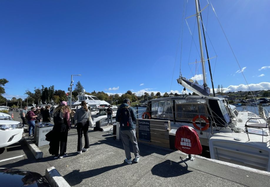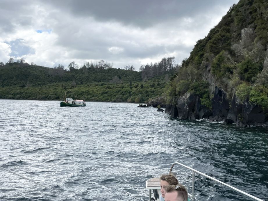 We are taking a 3 hours Sailing Adventure in Lake Taupō, located in New Zealand's central North Island. It is the country's largest lake, formed by a massive volcanic eruption approximately 27,000 years ago from the Oruanui eruption, one of the most significant volcanic events in Earth's history. The lake's only outlet is the Waikato River, which flows through the renowned Huka Falls that we visited this morning . Covering an area of about 616 square kilometers, it's roughly the size of Singapore .