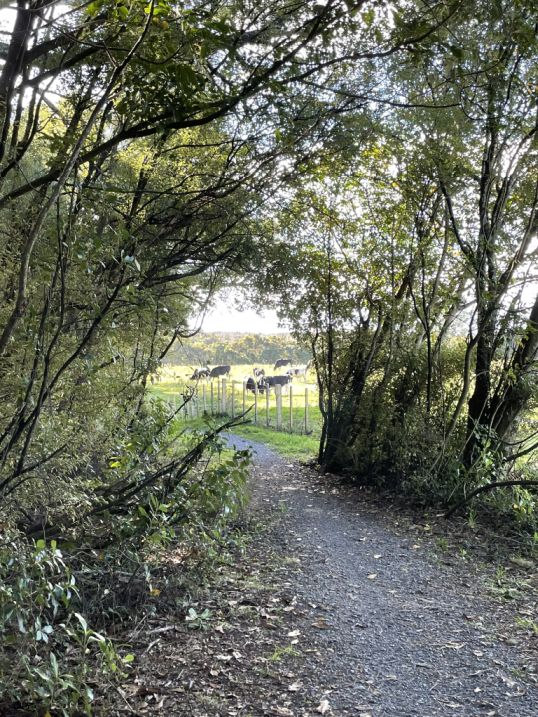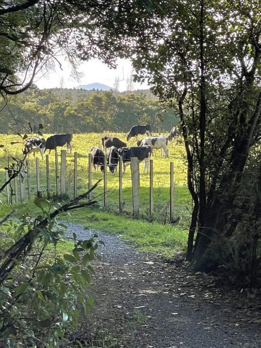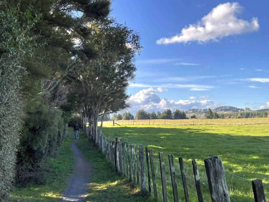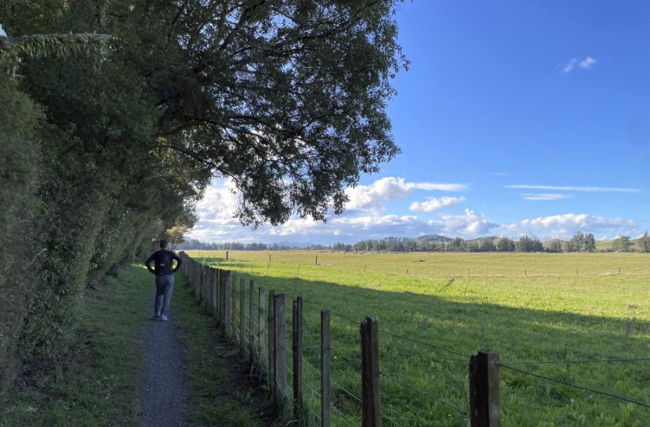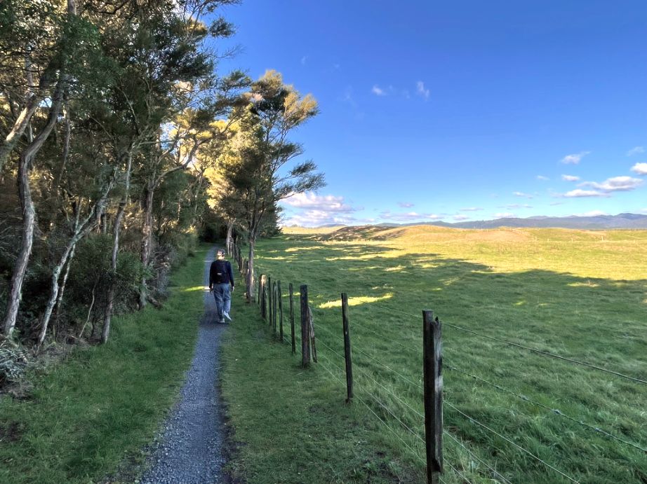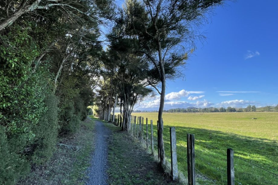 The farmland gives the trail a varied rhythm, switching from dense native bush and riverbank to wide, sunny spaces.